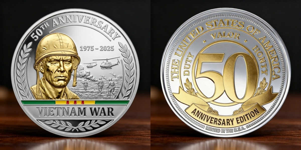Marking the 50th Anniversary (1975–2025), this commemorative coin pays tribute to the courage, sacrifice, and unwavering dedication of those who served during the Vietnam War.